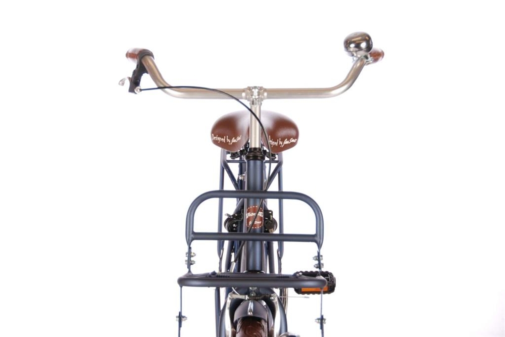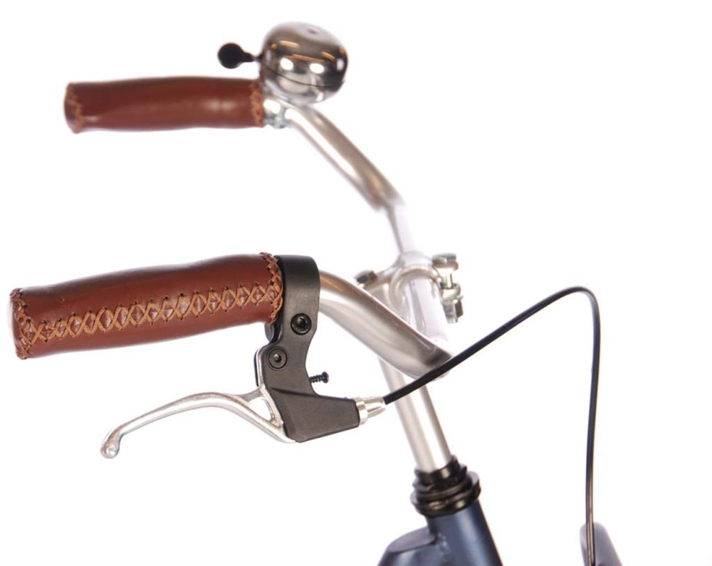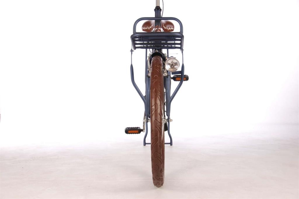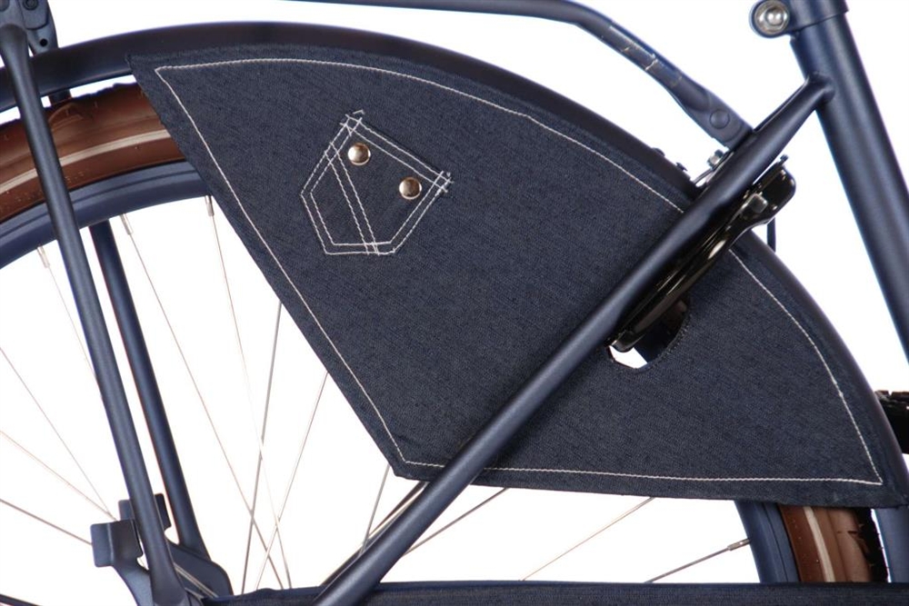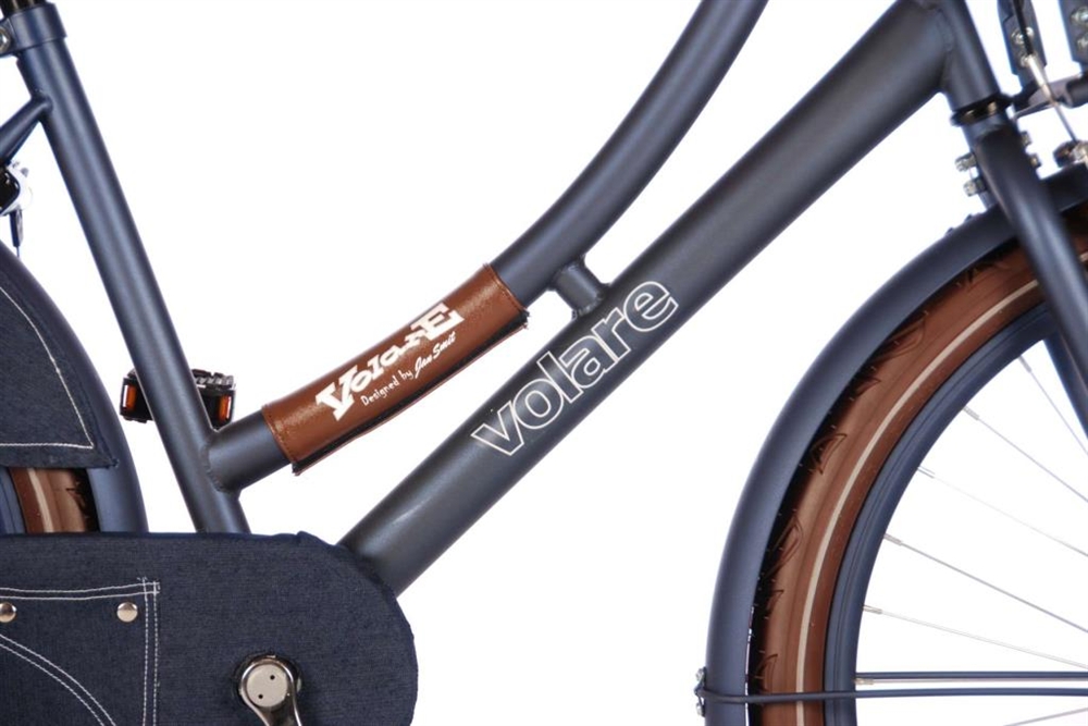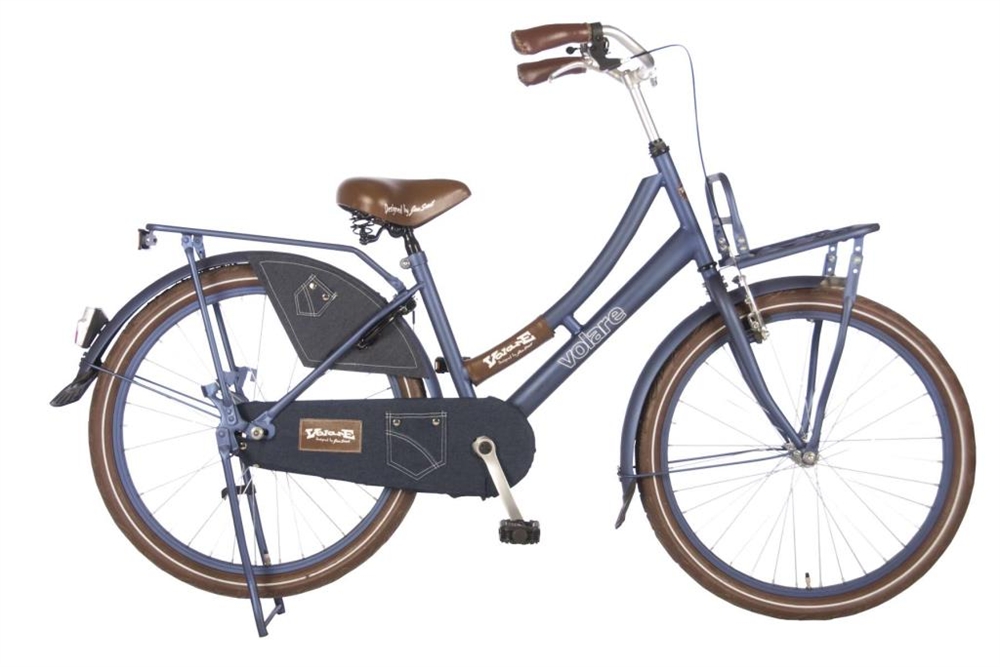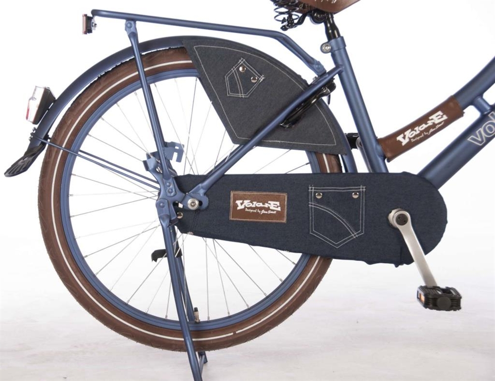 Exclusief bij Volare, de Designed By Jan Smit kinderfietsenlijn. Een moderne stoere omafiets met echte Jeans spijkerstof. Zelfs de regenbeschermers zijn gemaakt van Jeans, met een echte achterzak erop. Extra opgeblazen frame. Kunstlederen bruine handgrepen, bruin verend zadel en extra brede bruine banden. Batterij voor en achterverlichting, slot. Met originele klapstandaard en voordrager. In een speciaal prachtige matte blauwe kleur. Op deze omafiets wil elke jonge dame wel naar school fietsen.