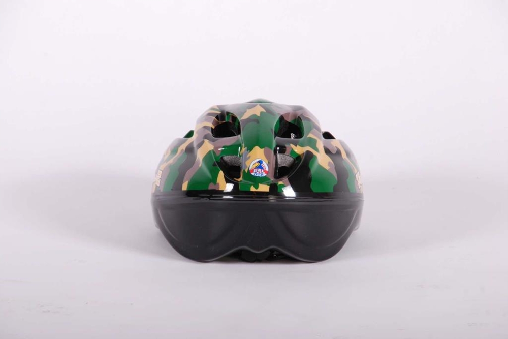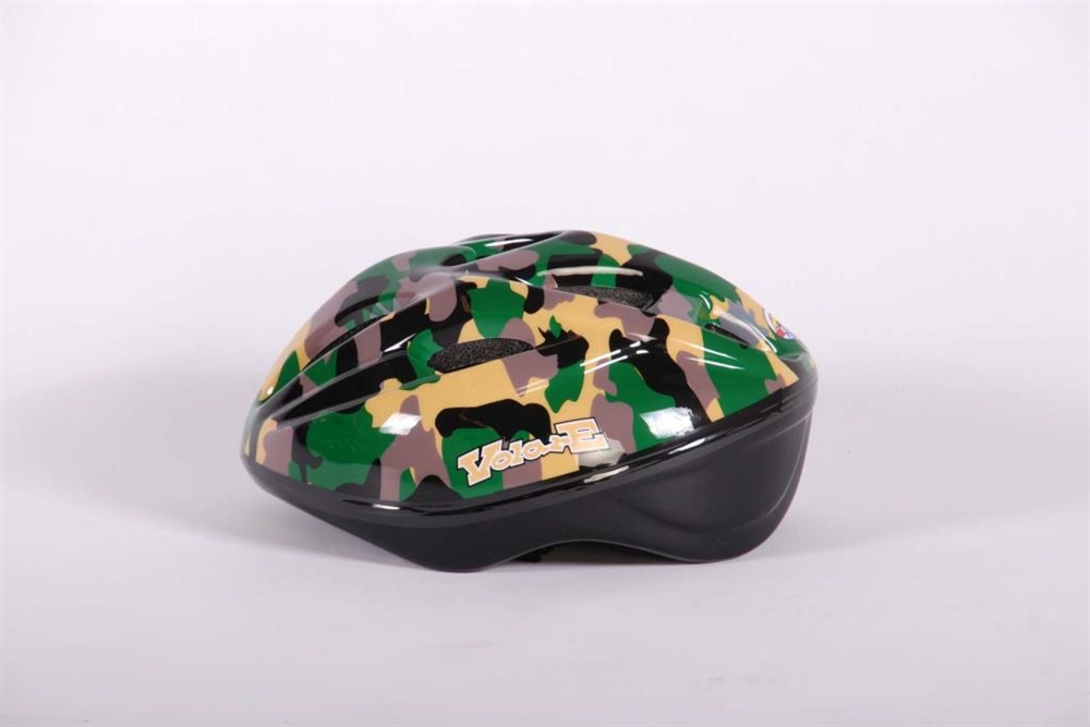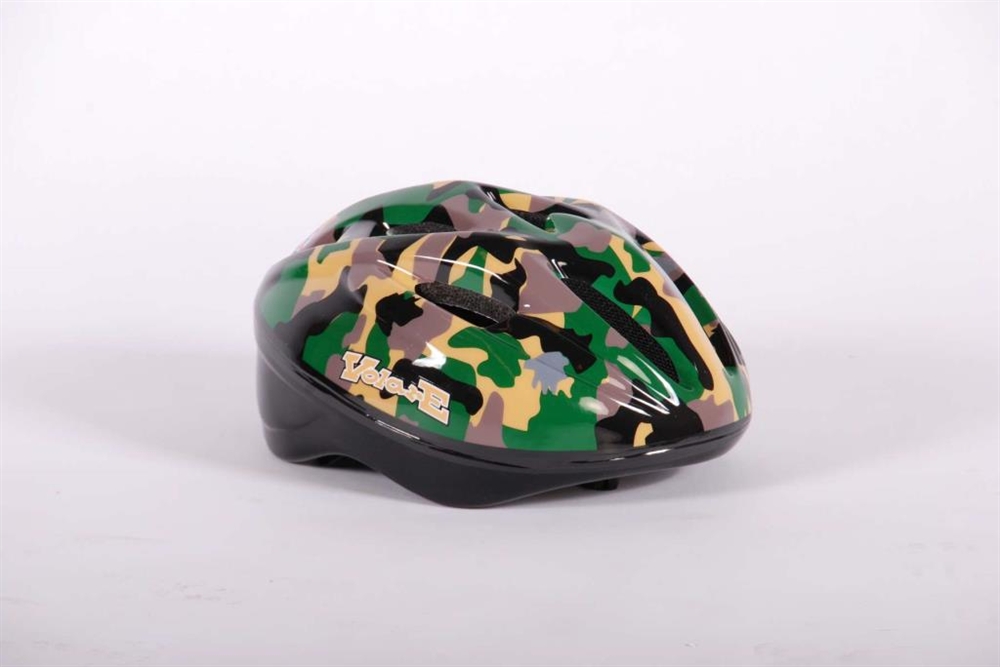 Super stoere luxe Volare Fiets en of Skatehelm met Camouflageprint. Deze helm is de luxe versie, met onderkant van de helm ook bedekt. Helm is verstelbaar met draaiknop in maat 51 - 55 cm, kan dus langere tijd gebruikt worden. De helm is naar de strengste eisen TUV/GS goedgekeurd, CE EN 1078 > Type Volare Ambush