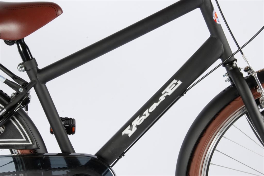 Speciaal voor de stoere moderne jongens hebben wij een opafiets gemaakt in de kleur mat zwart. Modern en top Kwaliteit met nieuw ontworpen extra opgeblazen frame. Kunstlederen bruine handgrepen, bruin verend zadel en bruine banden. Deze versie heeft een luxe kettingkast en 3 versnellingen. Deze fiets is inclusief voordrager! Batterij voor en achterverlichting, slot. Aero double wall velgen. Mat zwart. Vanaf 16 juli verkrijgbaar.