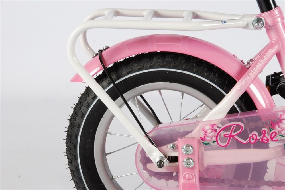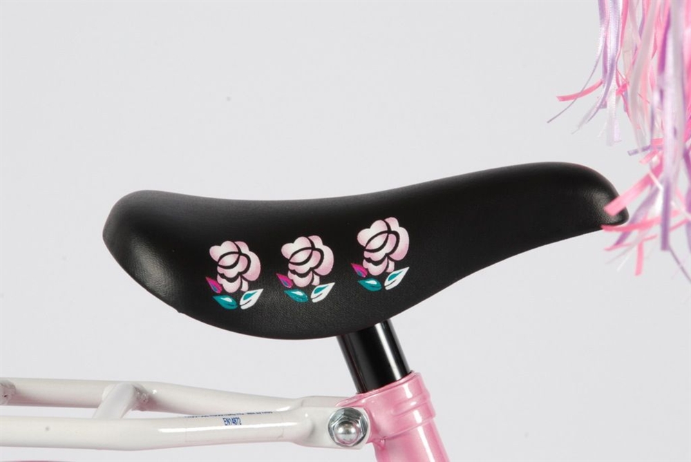 De Rose is al jarenlang een topper in de verkoop. De kleur is mooi zacht roze in combinatie met wit. Echt een meisjesfiets, waar elk meisje op wil leren fietsen.